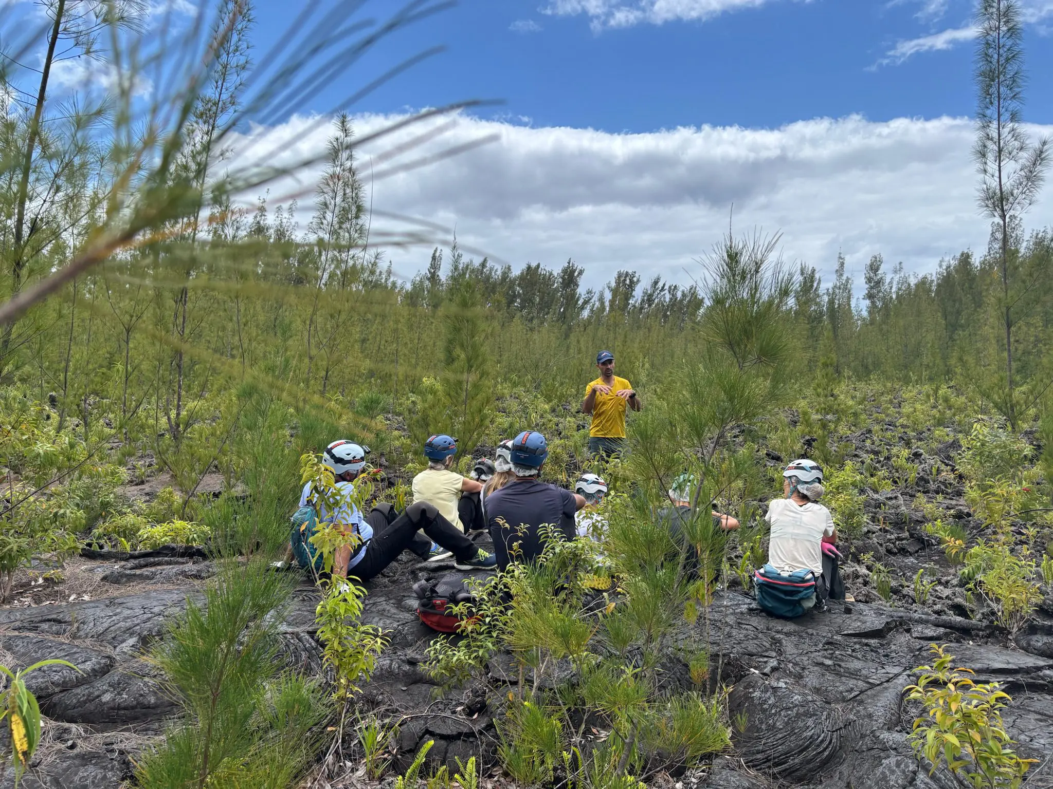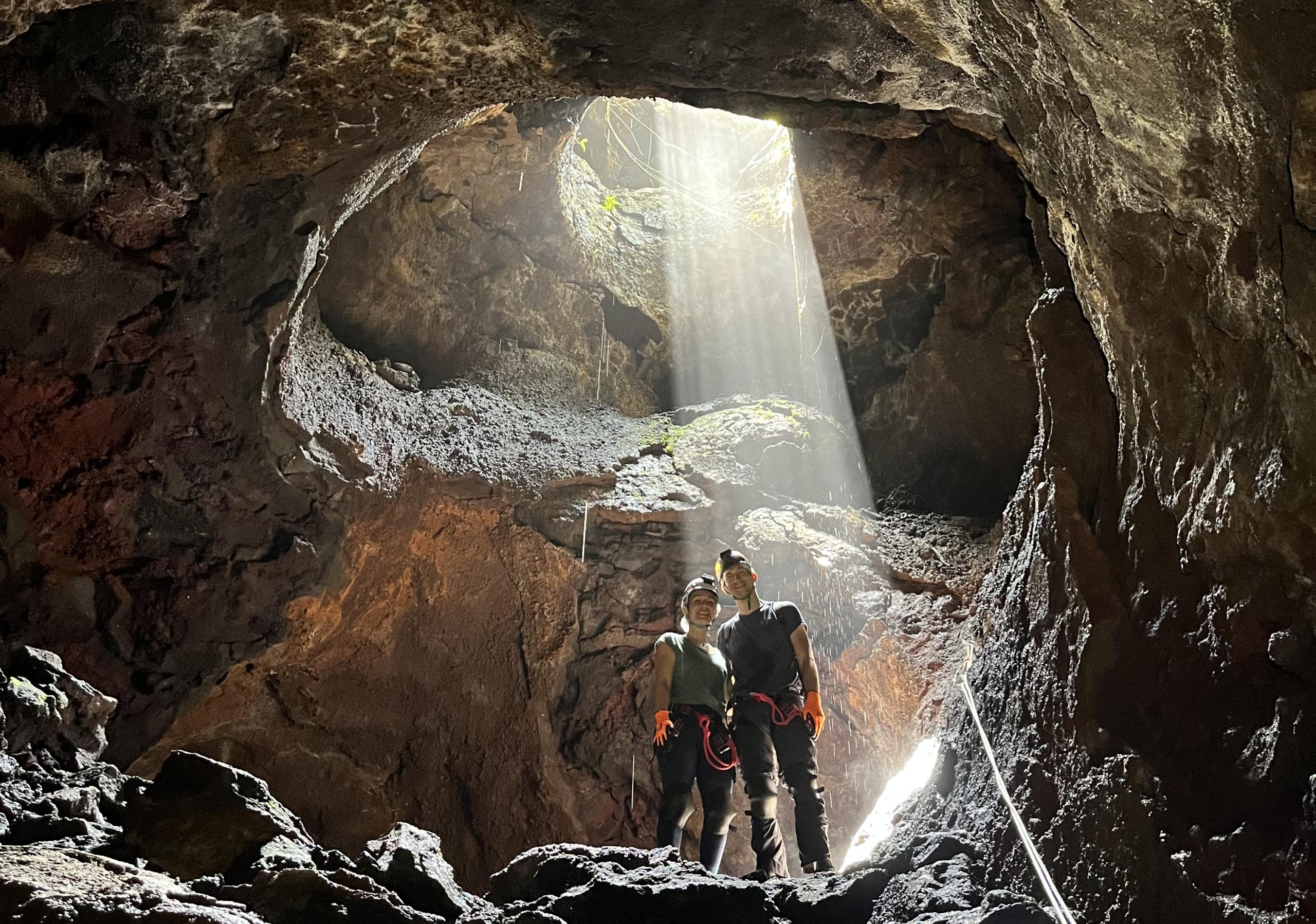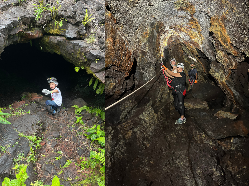 Chaque exploration souterraine est agrémentée d’un temps à l’extérieur, où nous profitons des paysages pour contextualiser le tunnel dans son environnement à travers ses sources : son éruption, son volcan et son île !