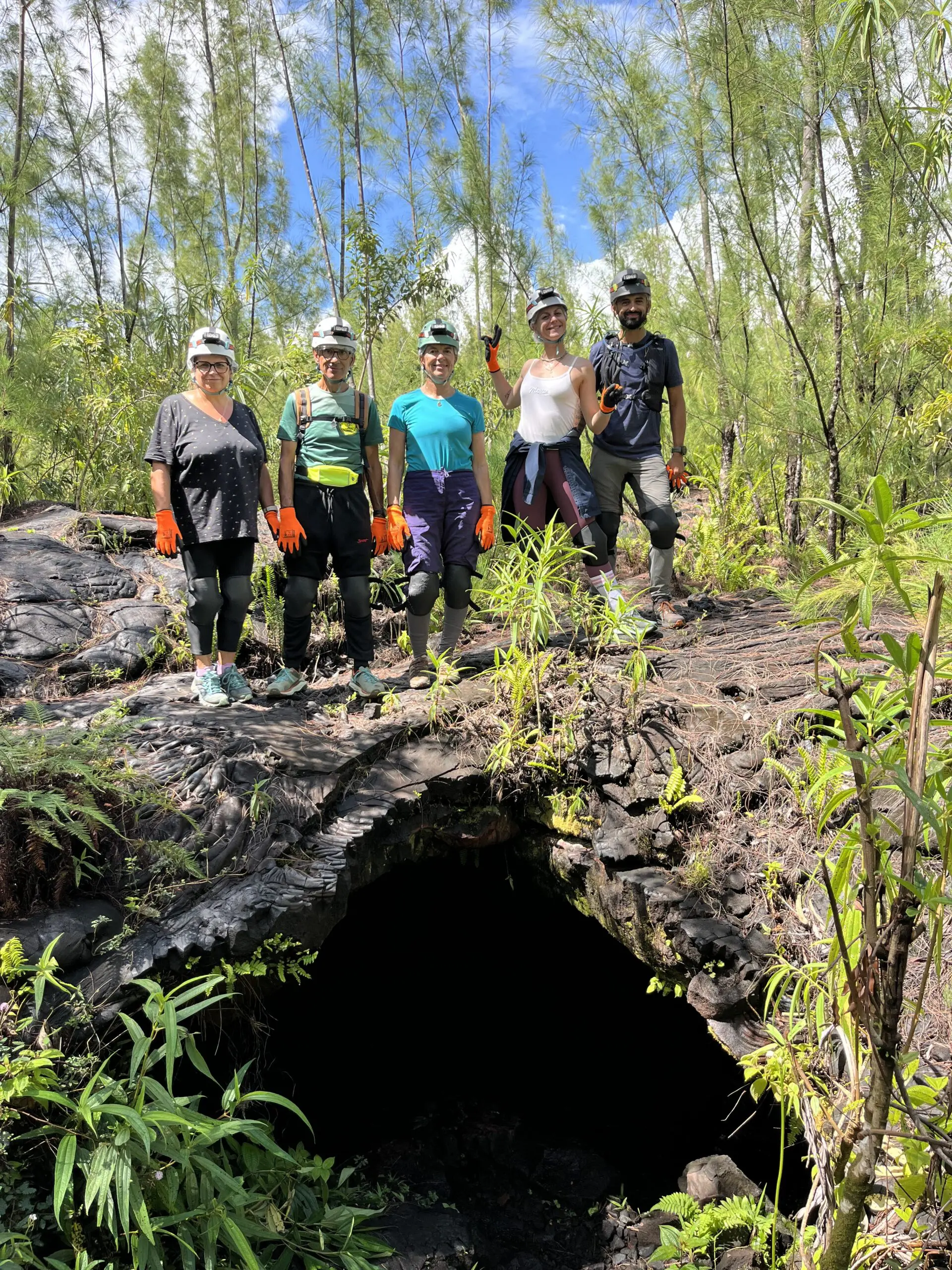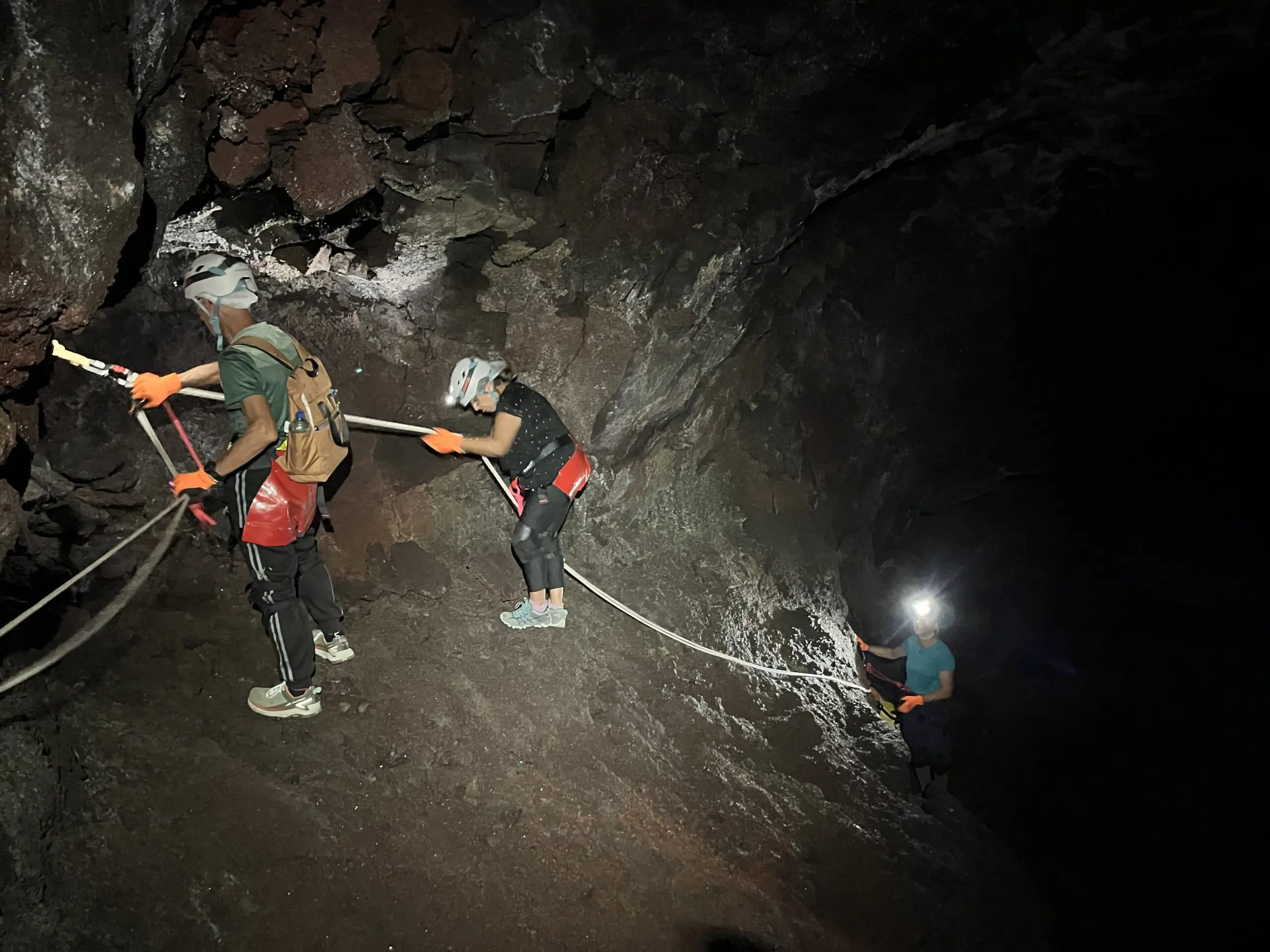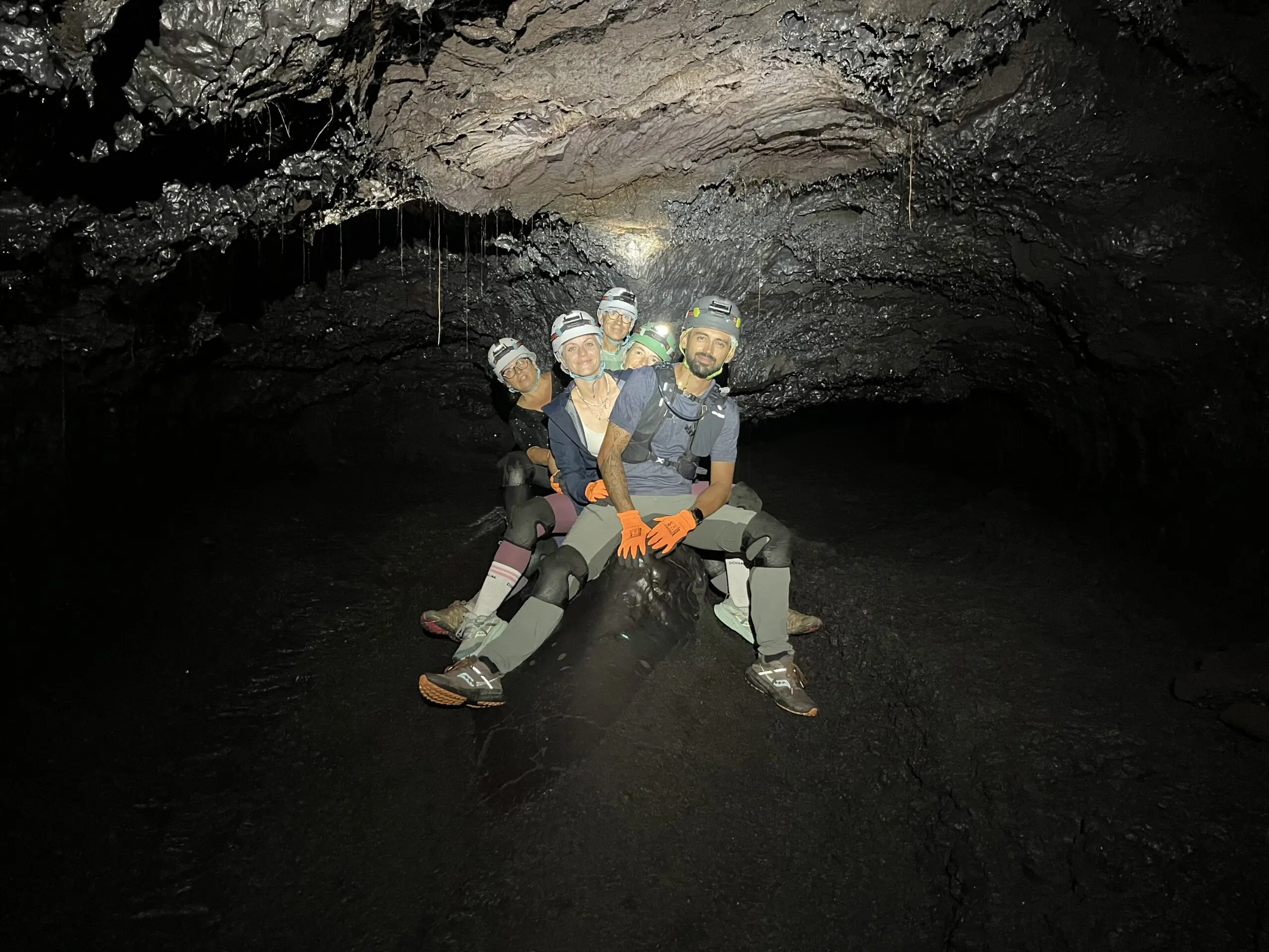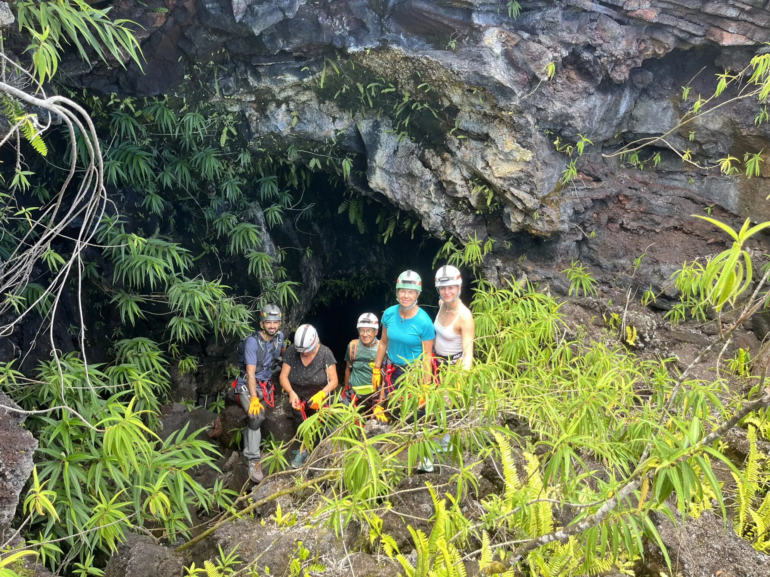Tunnel de 2004 : nous débuterons par cette belle coulée de lave “cordée”, aux formes et couleurs inédites. Une introduction contemplative et sans difficulté au monde souterrain Réunionnais.