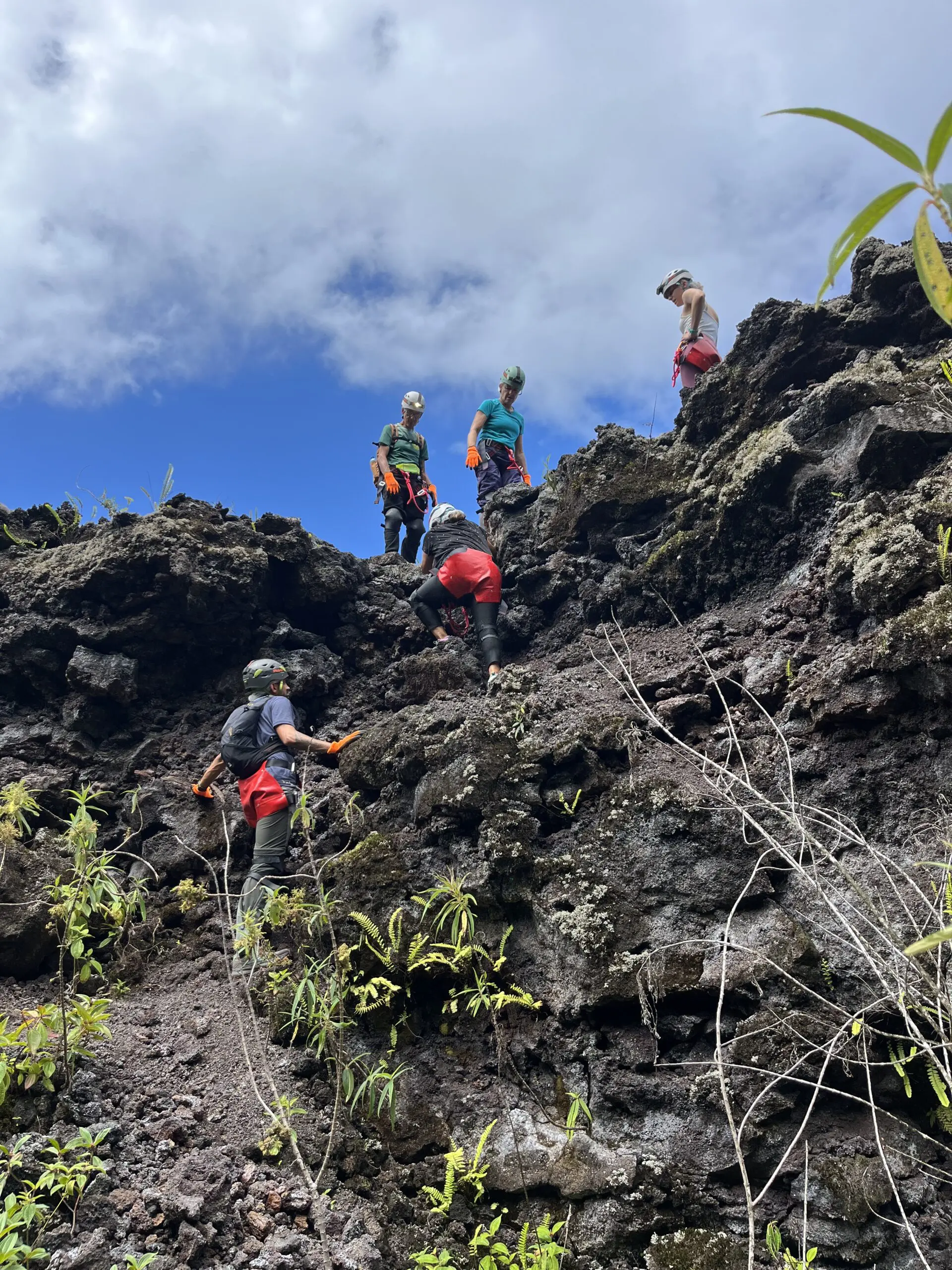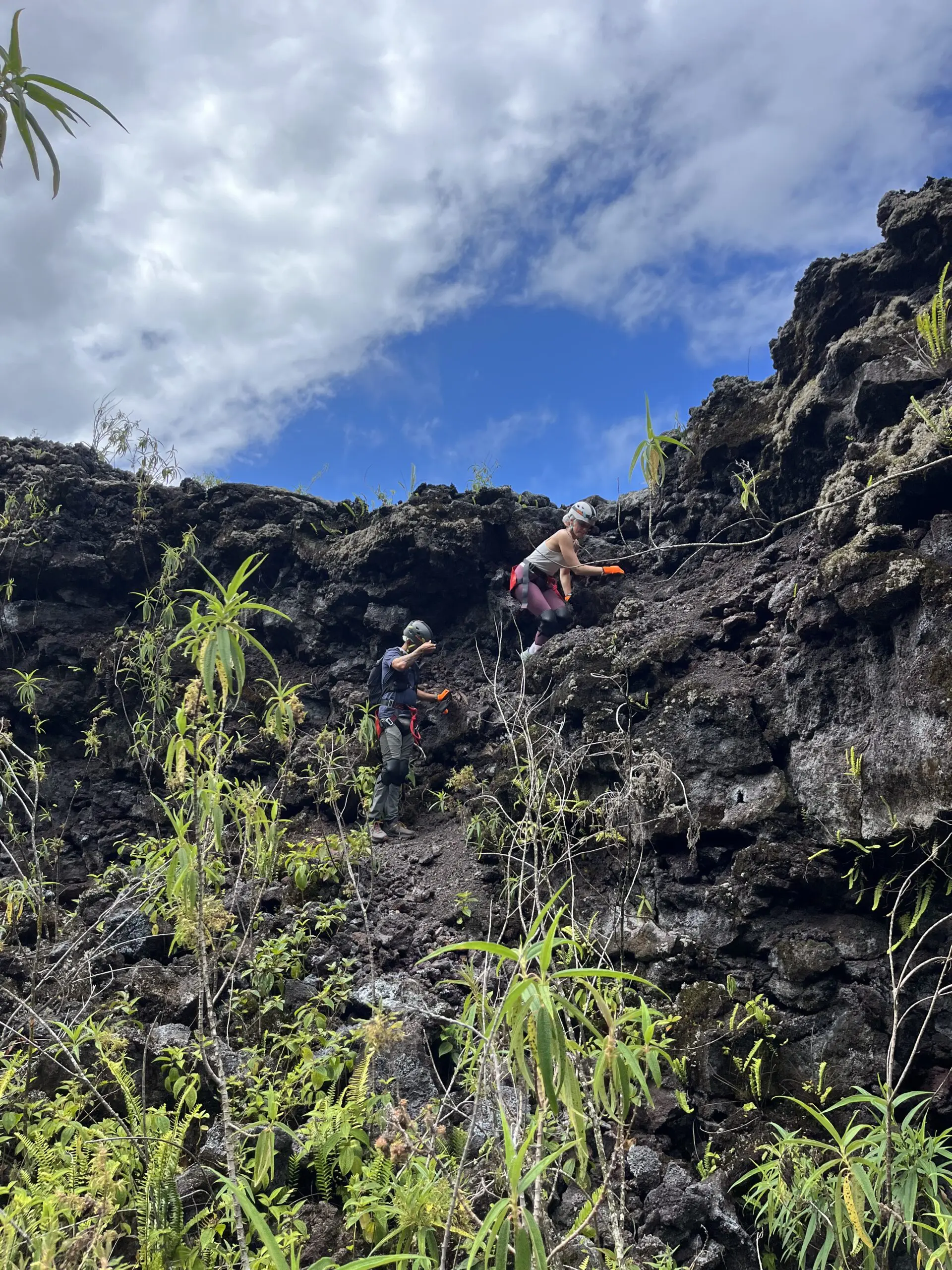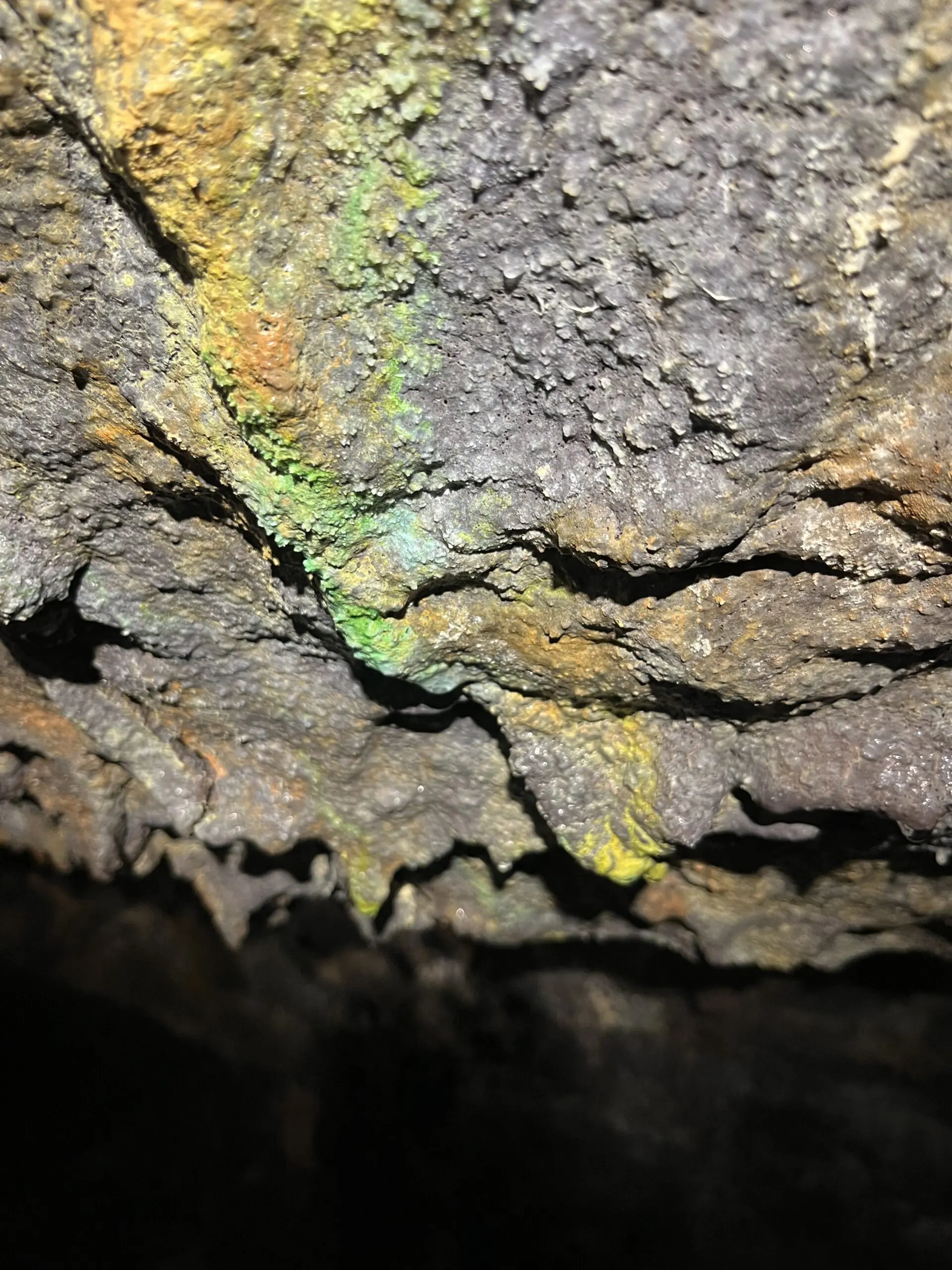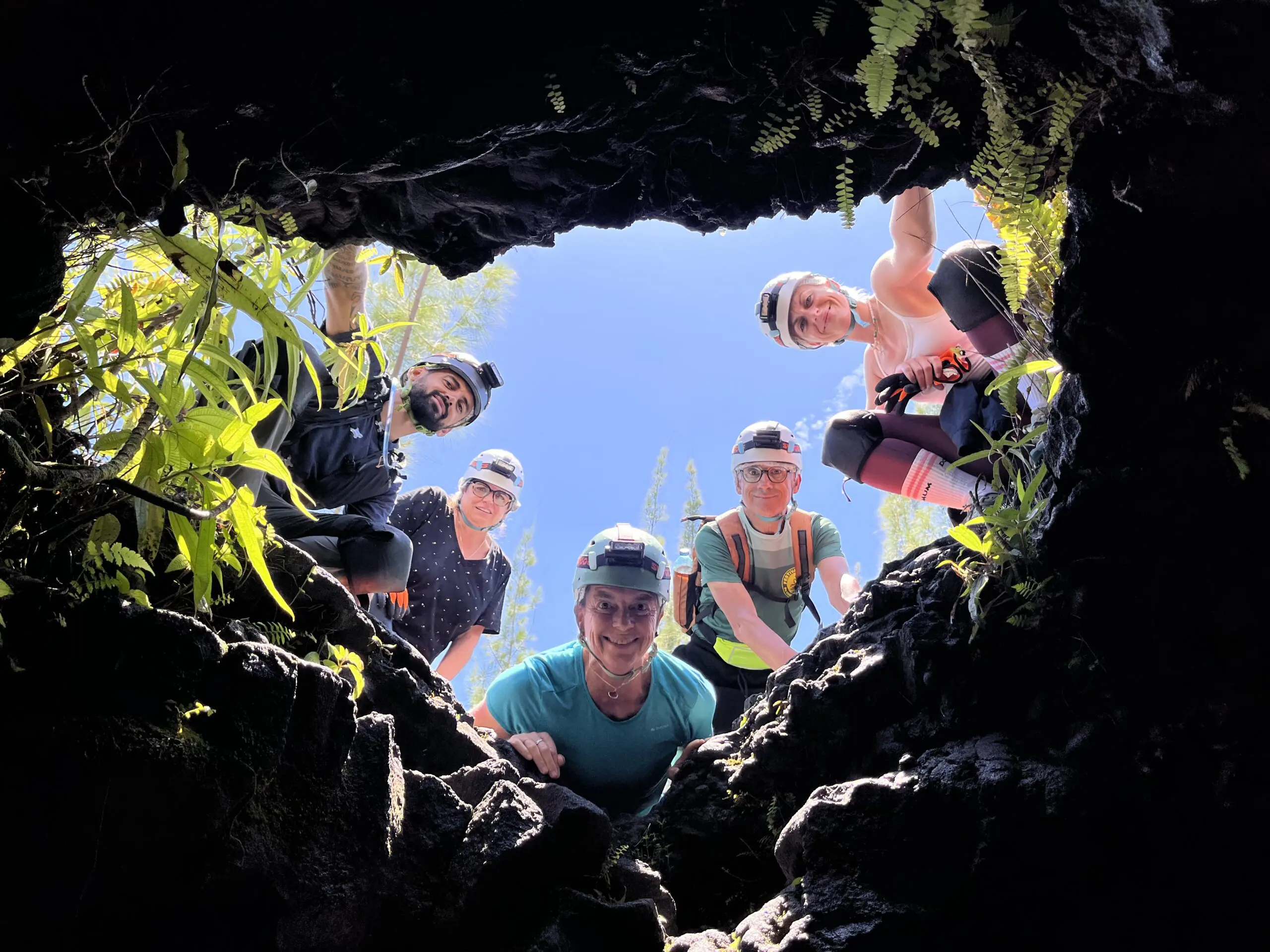 Tunnel de 2004 : nous débuterons par cette belle coulée de lave “cordée”, aux formes et couleurs inédites. Une introduction contemplative et sans difficulté au monde souterrain Réunionnais.